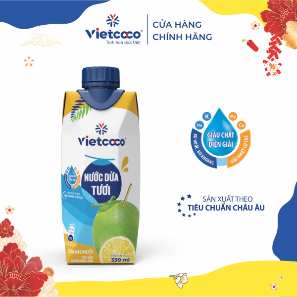 [PHIÊN BẢN TẾT 2026] Combo 6 hộp Nước dừa tươi chanh muối VIETCOCO - Hộp giấy 330ml